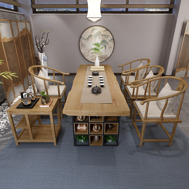 新中国式実木茶卓客間禅意大板泡茶台茶楼禅意自然辺模造古茶テーブルと椅子の組み合わせ