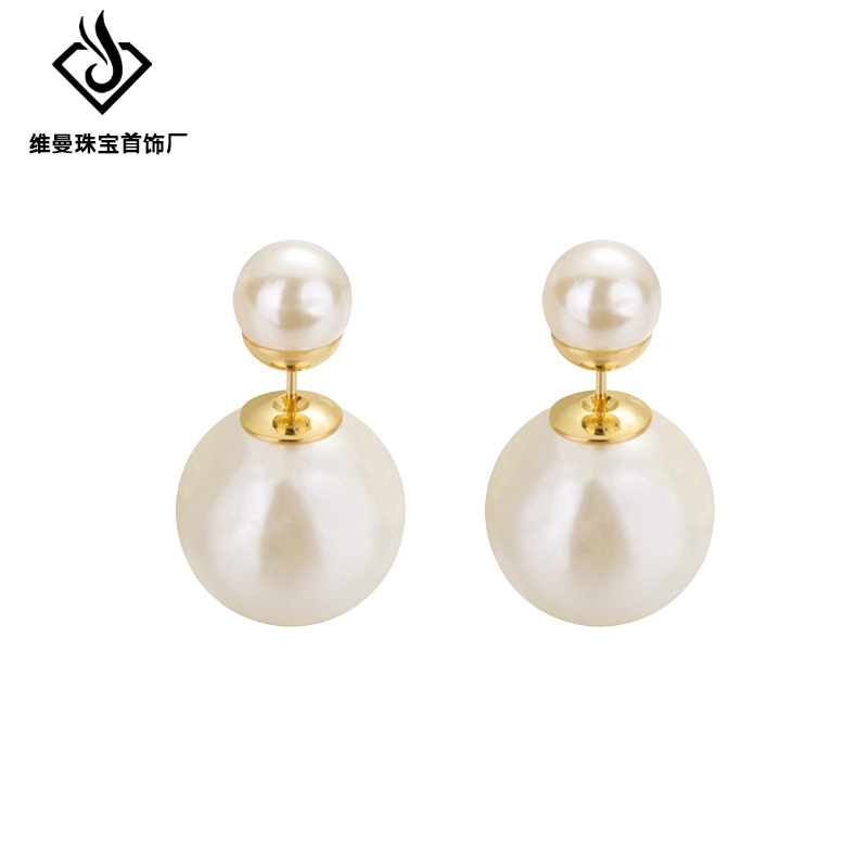 韓国式レトロ趙露思張嘉倪同型施家両面真珠ピアス女性軽豪華高級感シンプルイヤリング