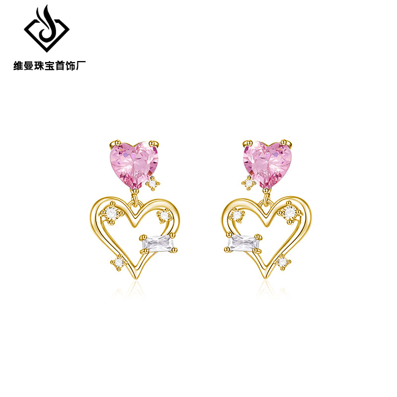 2024新型の精巧なピンクの愛のイヤリングの女性の軽豪華な高級なデザイン感はハート型のピアスにドリルのイヤリングを入れます。