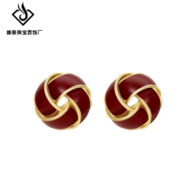 2024秋冬新作赤い編み玉イヤリング女性軽豪華高級デザイン感レトロエナメル滴釉薬ピアス飾り