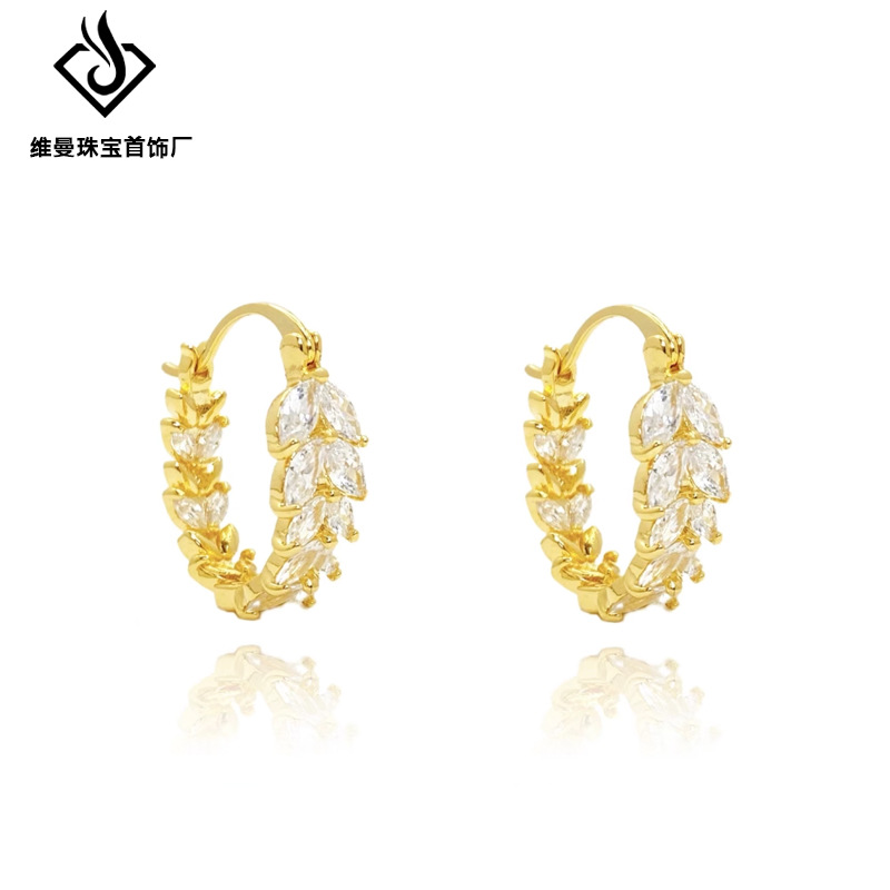 2024新型麦穂ジルコンの葉イヤリング女性の軽贅沢高級デザイン感ファッション気質フランスピアス