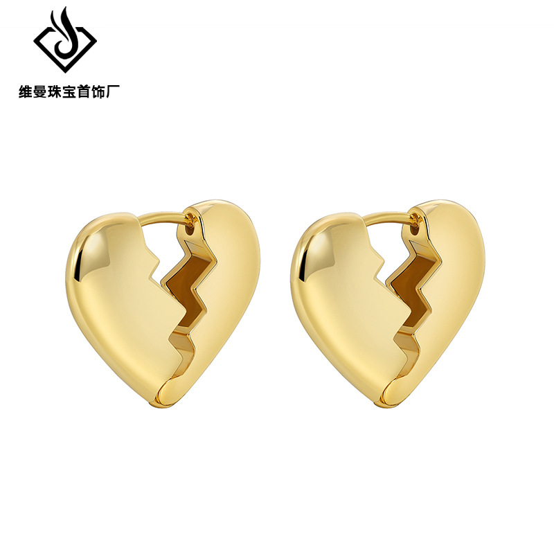 国境を越えた欧米の割れた心のイヤリング女性の贅沢な大衆デザインの高級感ファッション独特の愛のピアス