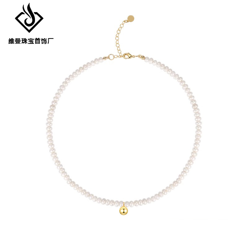 鐘楚セイは天然淡水真珠の小金豆ネックレスの女性が贅沢で高級なデザイン感があります。