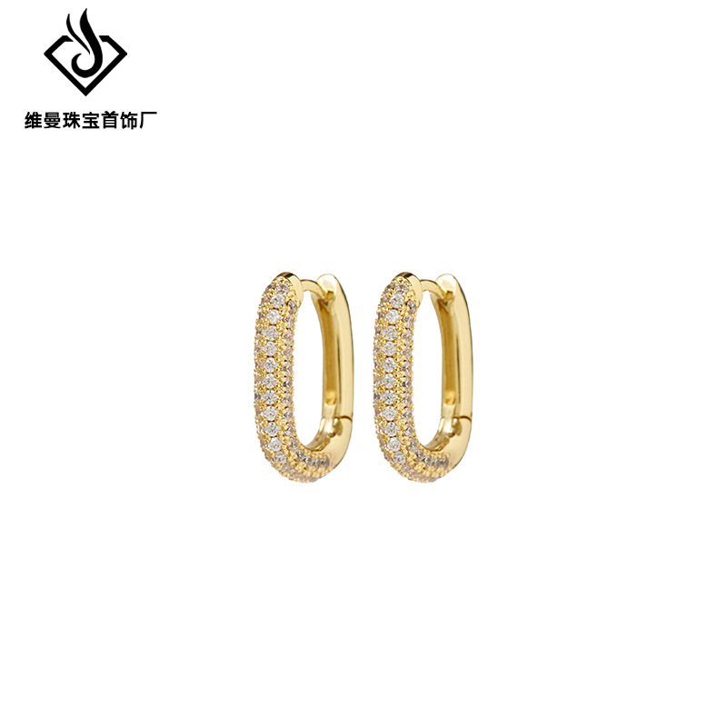 国境を越えた欧米のモザイクが輝くジルコンのu型イヤリング女性の軽贅沢なデザイン感ファッション気質ピアス