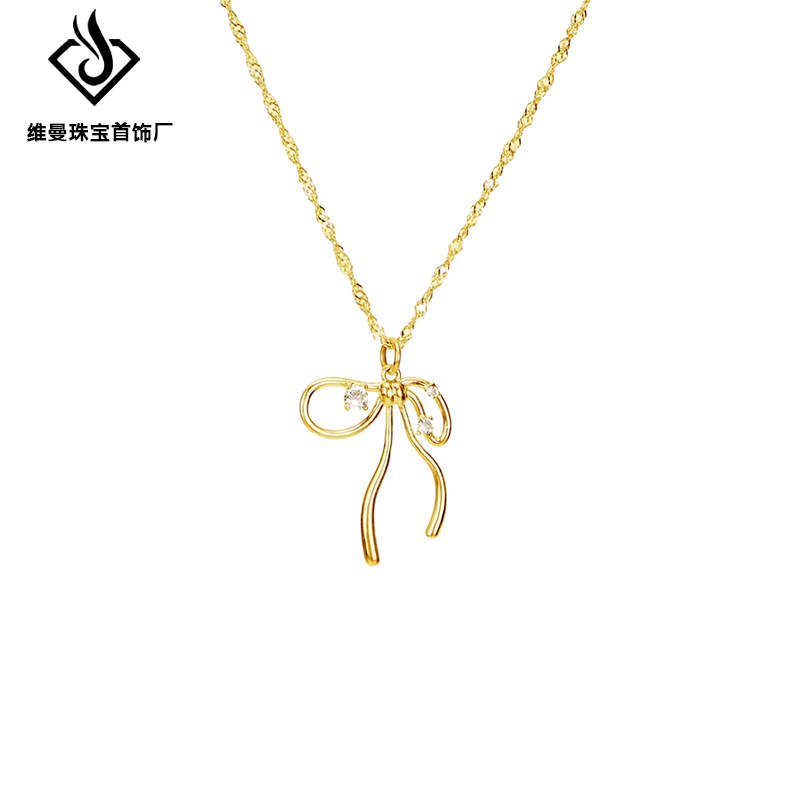 洗練された優雅なリボンのネックレス女性の軽贅沢な高級デザイン感ファッション百合蝶ネクタイ日常タイプの鎖骨チェーン