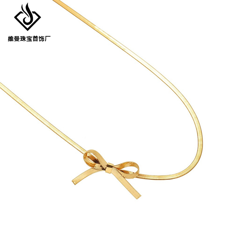 国境を越えた欧米の蝶結び首のネックレス女性の贅沢な高級デザイン感平形蛇骨鎖choker鎖骨鎖
