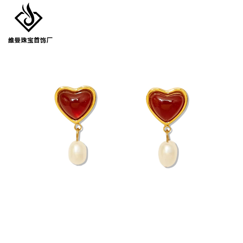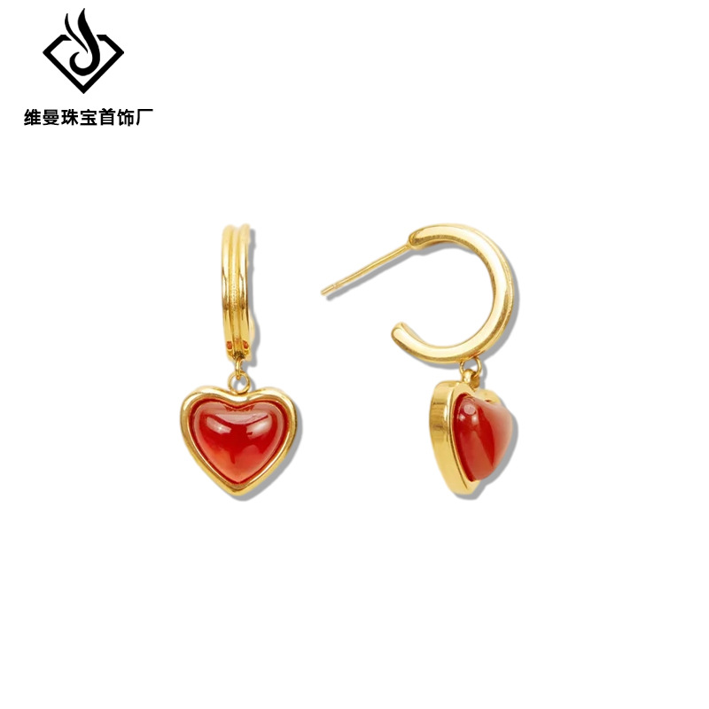 国境を越えた欧米の天然紅玉髄愛ピアス女性の贅沢なデザイン感ファッション赤いハート型イヤリング飾り