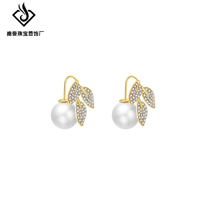 2024新作の優雅な雰囲気の木の葉の真珠のイヤリングの女性の軽くて豪華な高級なデザイン感はドリルのピアスを入れてイヤリングを合わせます。