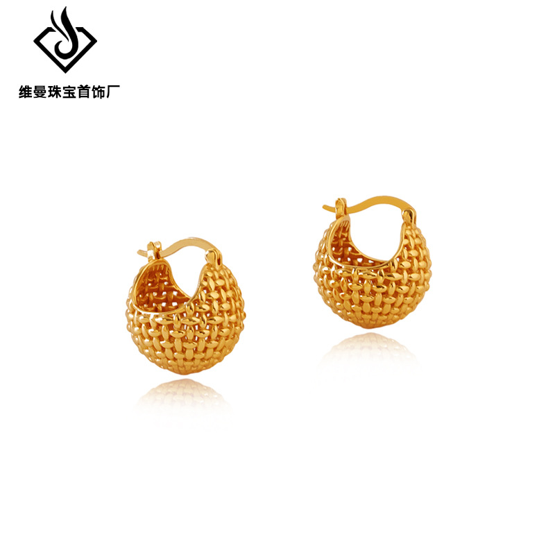 レトロな編み物の透かし彫りの網の丸いイヤリングの女性の軽くて豪華な高級なデザイン感のファッションの気質のピアスの欧米風の耳飾り
