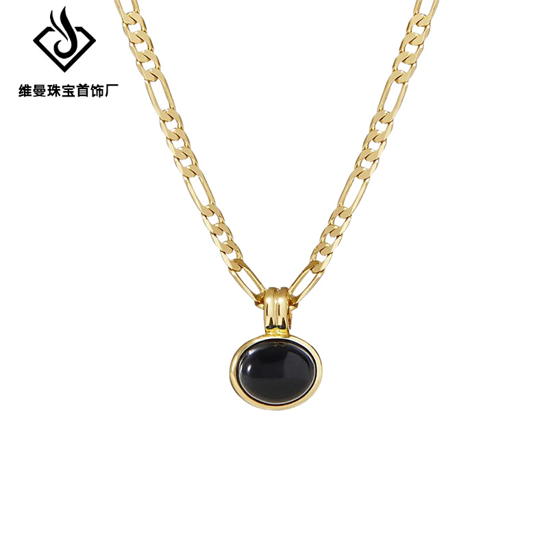 クロスボーダーヨーロッパ楕円黒瑪瑙ペンダントネックレス女性軽くて豪華で高級なデザイン感があります。