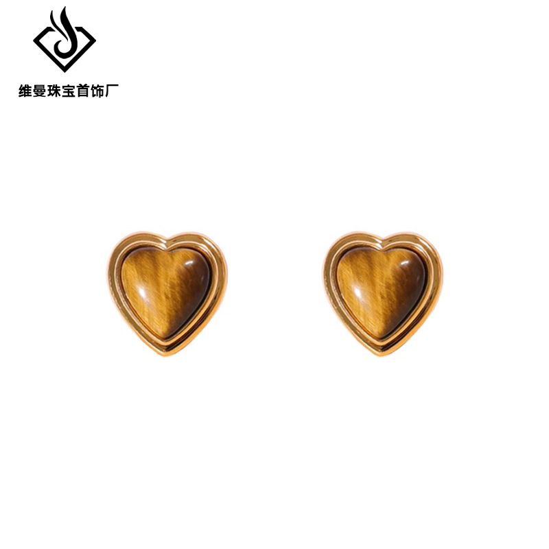 秋冬美ラード風虎眼石愛ピアス女性軽贅沢高級デザイン感ファッション独特ハート型イヤリング飾り
