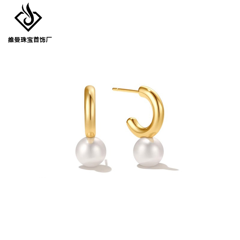 国境を越えた欧米のc字真珠イヤリングの女性は贅沢で高級なデザイン感があります。