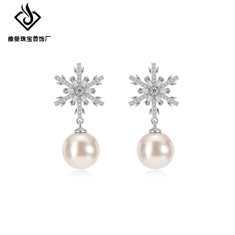 冬の雪の粒のジルコンの真珠のイヤリングの女性の軽くて豪華な高級なデザイン感のファッションの気質はイヤリングの優雅な耳飾りを合わせます。