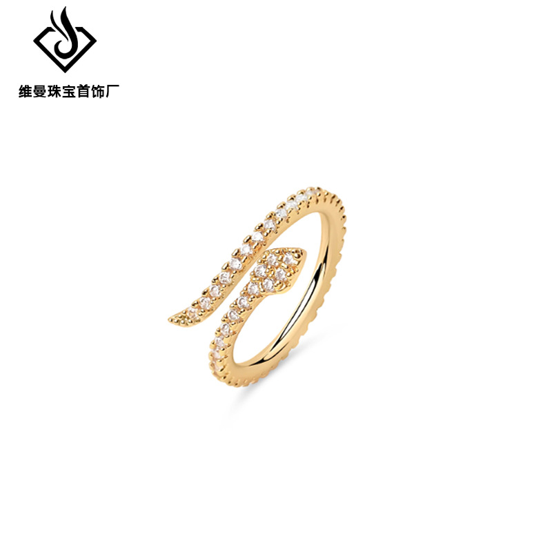 国境を越えた欧米の象形の金蛇の指輪の女性の軽豪華なオリジナルのデザインの高級感の霊蛇は口を開けて戒めを合わせます。