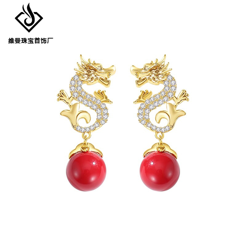 2024龍年新型本命年金龍紅真珠ピアス女性の軽贅沢高級デザイン感独特イヤリング