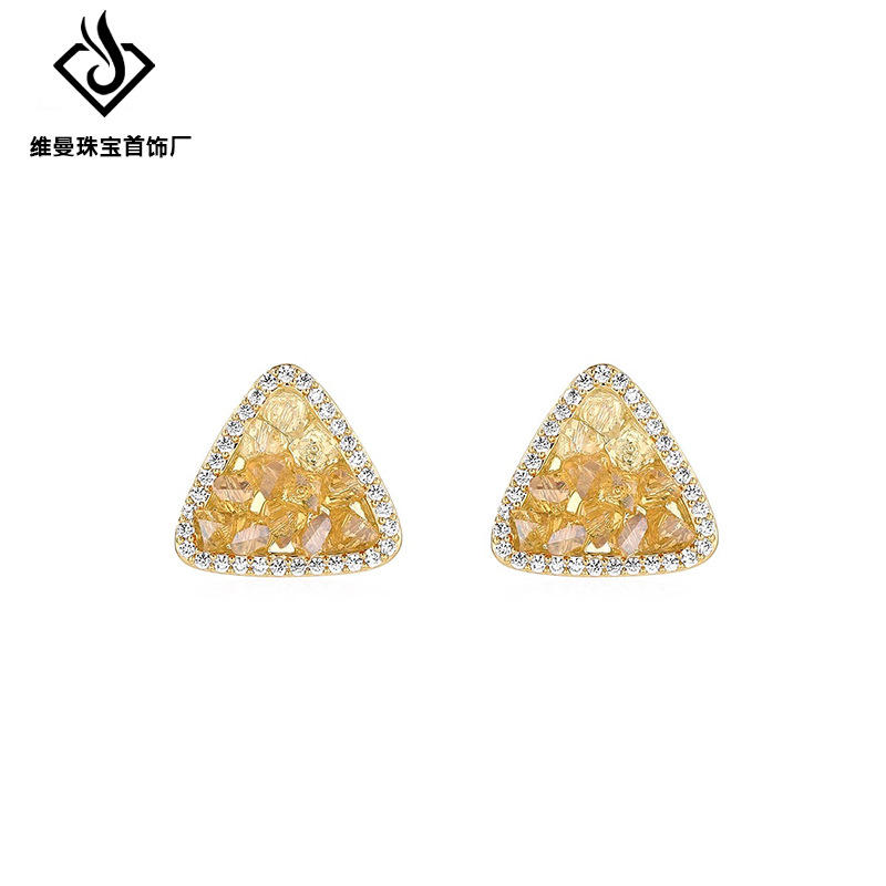 洗練された小清新な幾何学三角グラデーション水晶イヤリング女性の贅沢な高級デザイン感