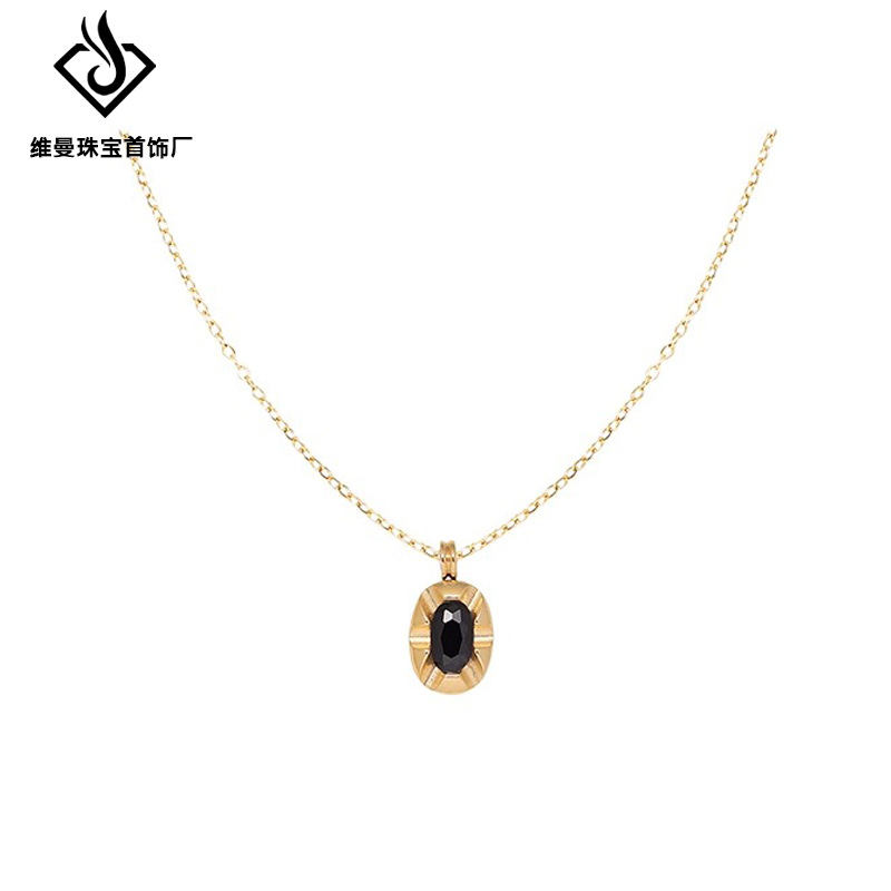 レトロins風楕円幾何学黒瑪瑙素チェーンネックレス女性軽くて豪華で高級なデザイン感があります。