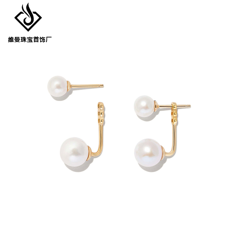 国境を越えた欧米の2つの施家真珠ピアス女性の軽贅沢なデザイン感1つのイヤリングピアス