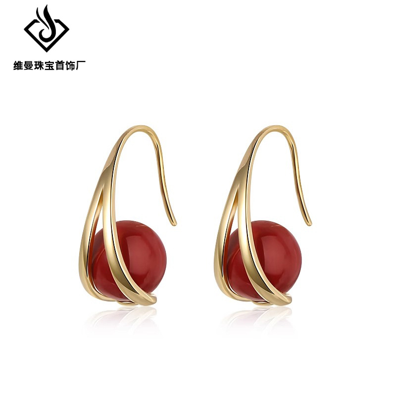 秋冬の新年の赤い瑪瑙のピアスの女性の軽い豪華な大衆の設計の高級感の小さくて精巧なイヤリングのイヤリングのアクセサリー