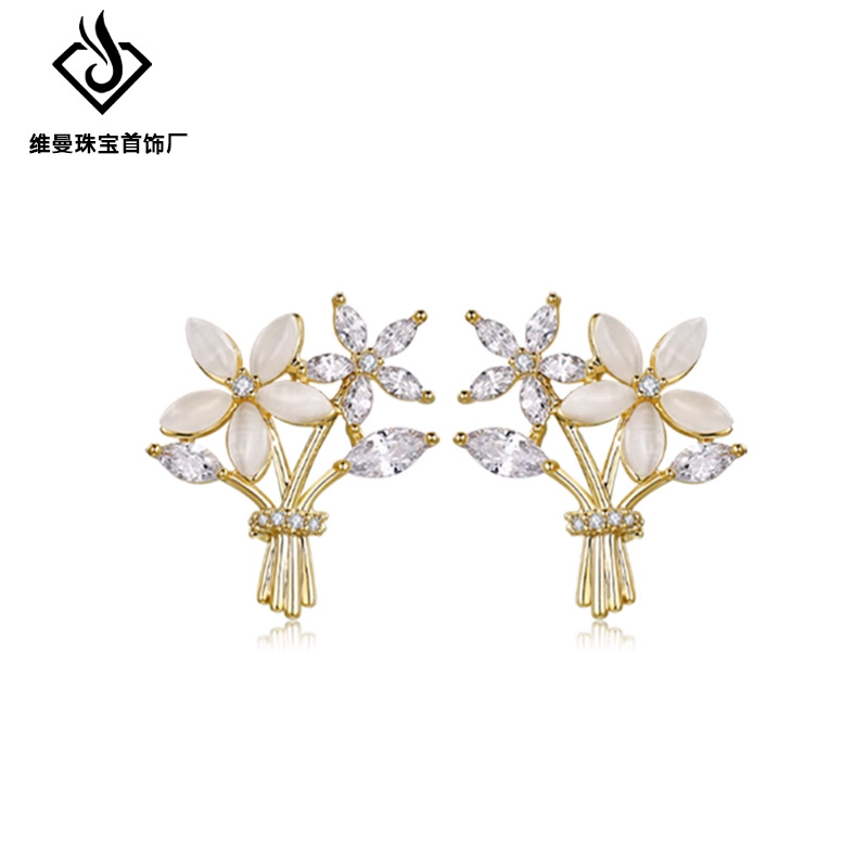 洗練されたフランスのレトロな猫の目の石の花のピアス
