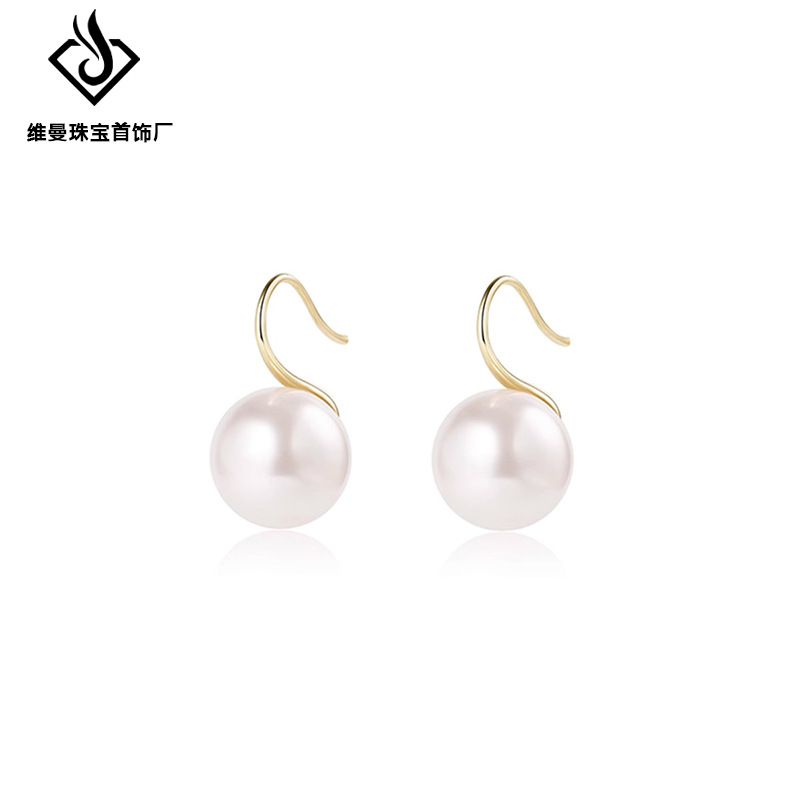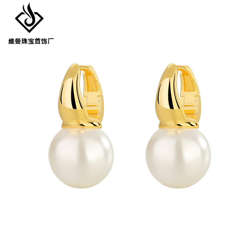 2024新型シンプル正円施家真珠イヤリング女性軽贅沢高級デザイン感ファッションピアス