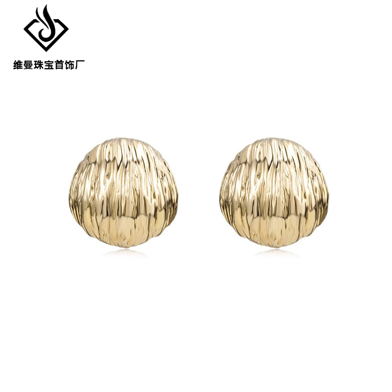 フランスのレトロな香港風の金の溶岩のピアスの女性の軽い豪華な大衆の設計の高級感のしわは古い質感のイヤリングをします。