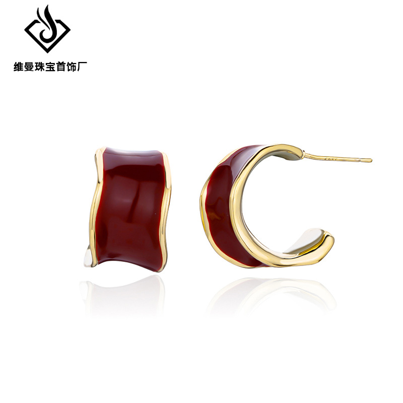 2024新型フランス式赤いエナメルの釉薬ピアス女性の豪華な高級感のあるファッションデザインのイヤリング