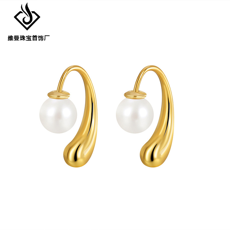 フランスのレトロな金豆真珠のピアスの女性の軽い豪華な大衆の高級なデザイン感のシンプルな気質の銀の針のイヤリングの耳飾り