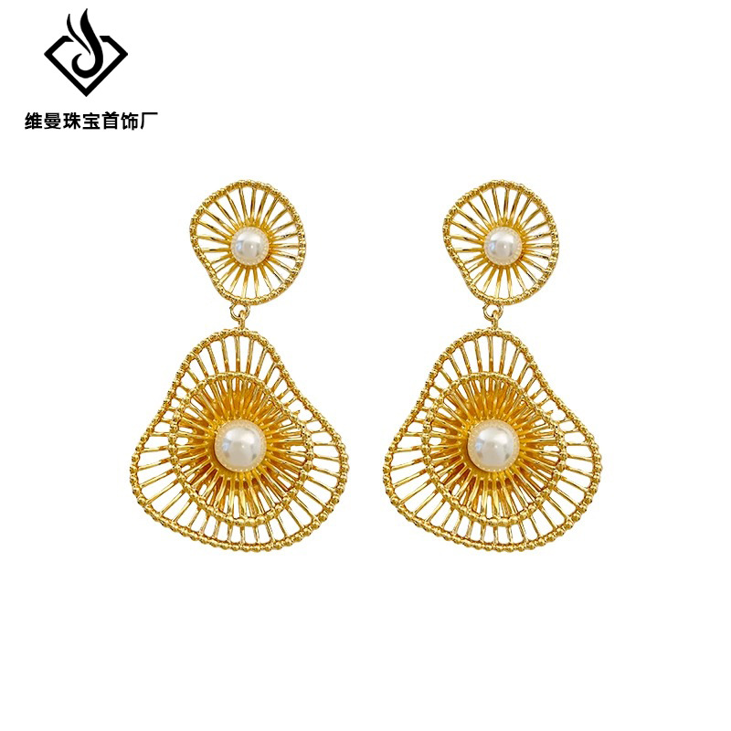 良いことは双江喜張嘉倪と同じドームの透かし彫りイヤリングの女性の贅沢な高級デザイン感金メッキピアス