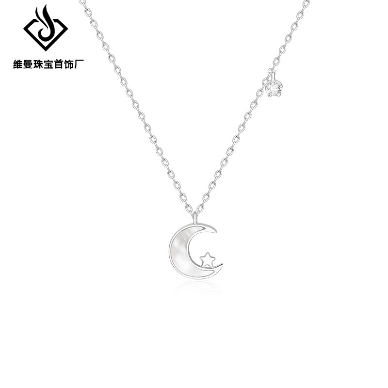 韓国式の精巧な気質の白い貝の母のネックレスの女性の高級なデザイン感のファッションの百合星の月のペンダントの鎖