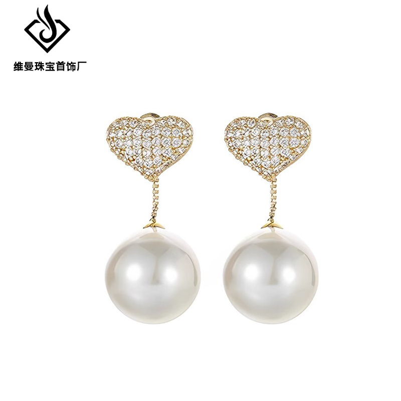 フランスのレトロなダイヤモンドの愛のフリンジのピアスの女性の軽くて豪華な高級なデザイン感の真珠のペンダントのイヤリングの気質の耳飾り