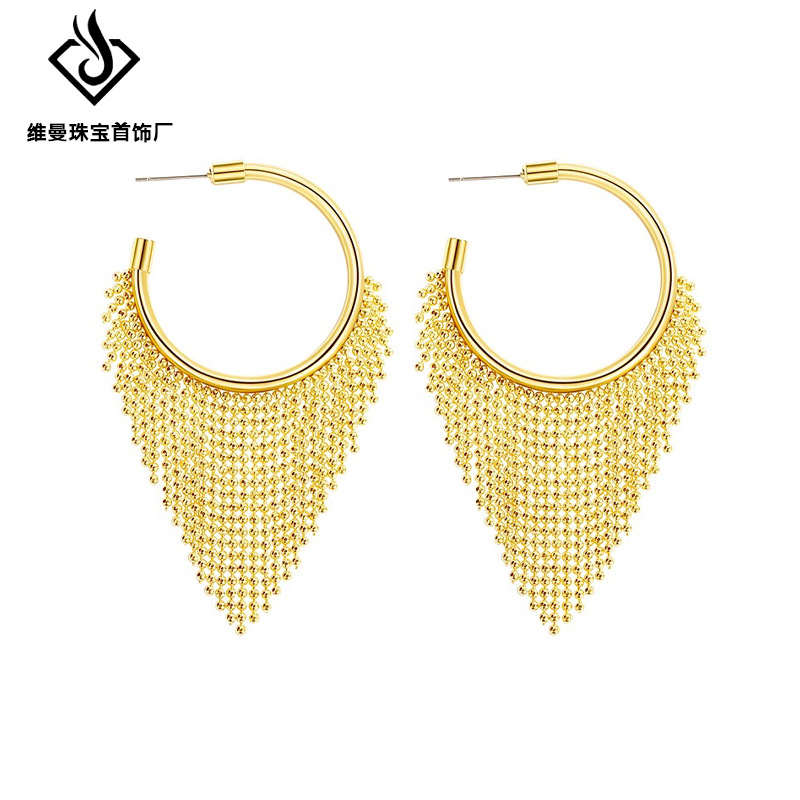 国境を越えた欧米の誇張した長い金属のフリンジイヤリングの女性のタイプの軽い贅沢な高級なデザイン感の冷たい風のピアスのイヤリング