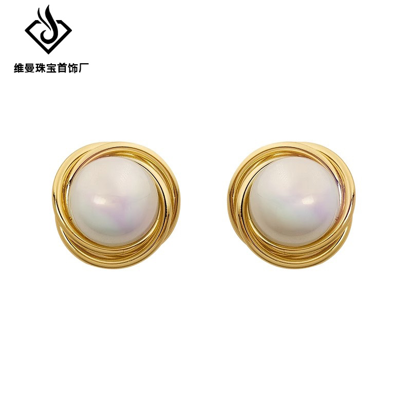 国境を越えた欧米の名媛気質スパイラル真珠ピアス女性の贅沢な高級感フランスのレトロな貝母耳飾り