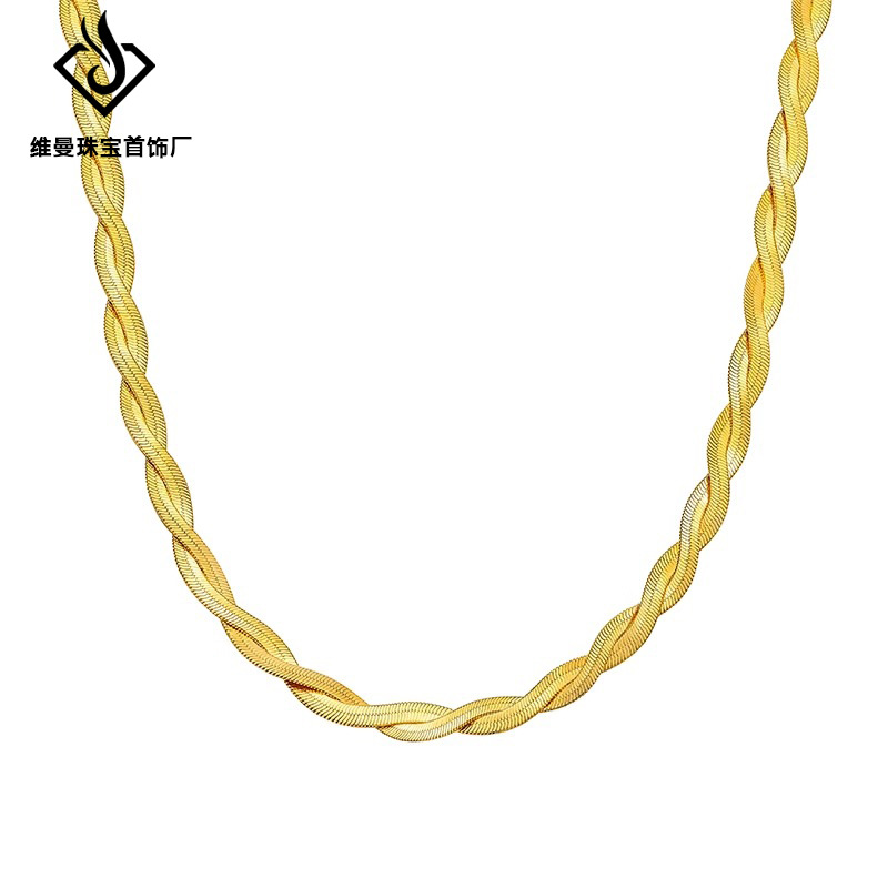 欧米のチタン鋼は色が落ちない平形の金蛇の骨のチェーンのネックレスの女性の軽くて豪華な高級な設計感が簡単で、鎖の骨のチェーンに似合います。