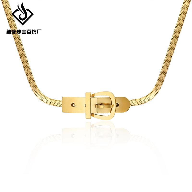 欧米のレトロなベルトのバックルの偏平な形の蛇の骨のチェーンの女性の軽くて豪華な高級な設計感の個性的で冷たい風は色のネックレスを褪せません。