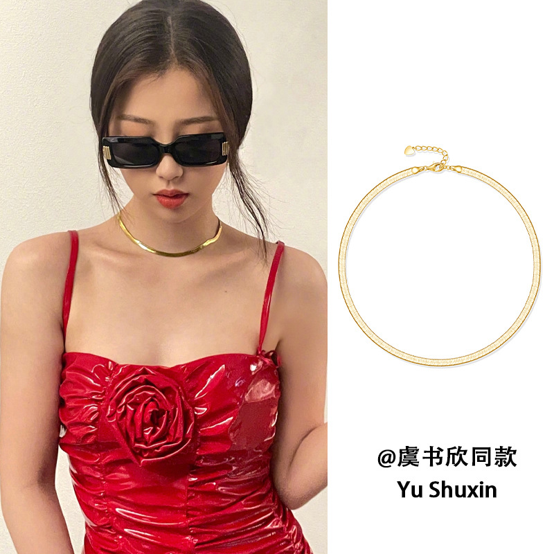 虞書欣白百何同項平形蛇骨鎖女欧米軽豪華メッキ18k金高級感ブレード鎖