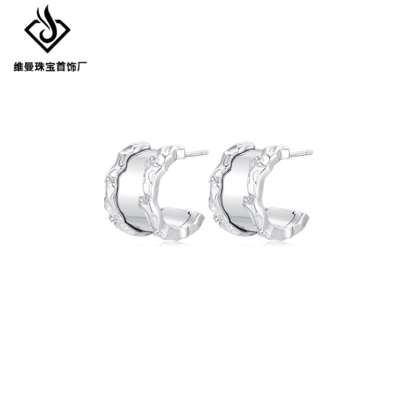 C字の鏡面のピアスの女性の軽い豪華な大衆のファッションの個性の高級なデザイン感の丸いイヤリングのきわめてシンプルな気質の耳飾り