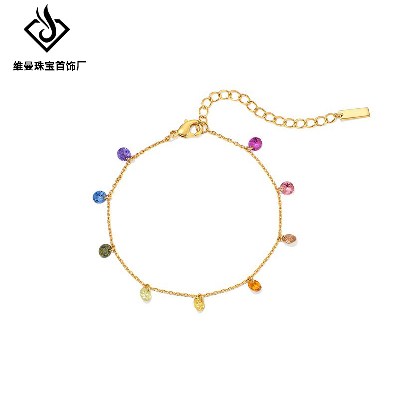 新しい虹のブレスレットの軽い豪華な大衆の設計の女性の精巧な百合メッキの18kの金の高級感の手の串の夏のinsの風潮