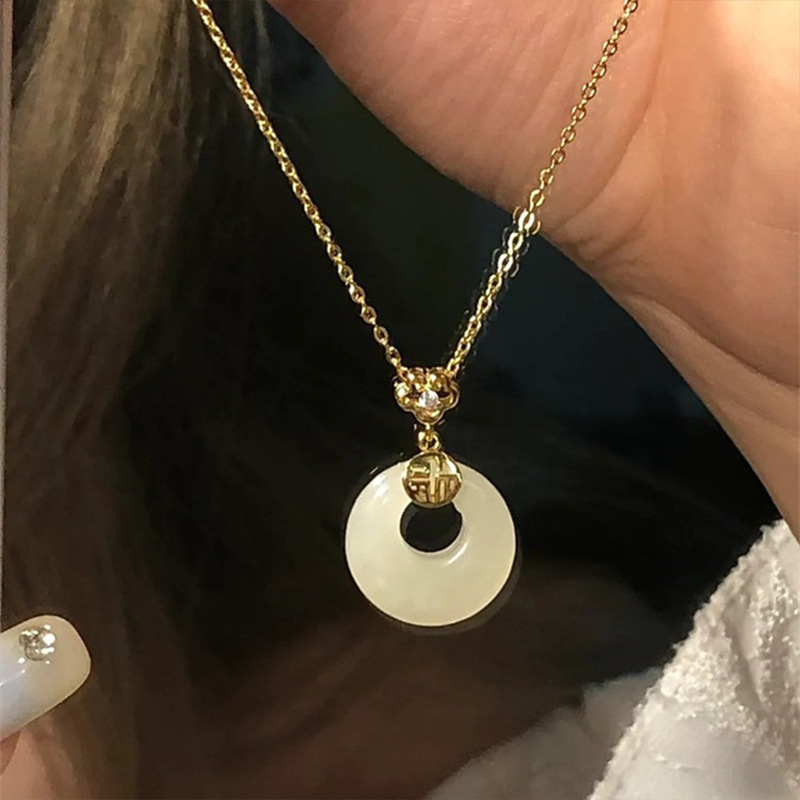 S925純銀福気天然和田玉平安ボタンネックレス女性大衆高級感国風送彼女鎖骨鎖