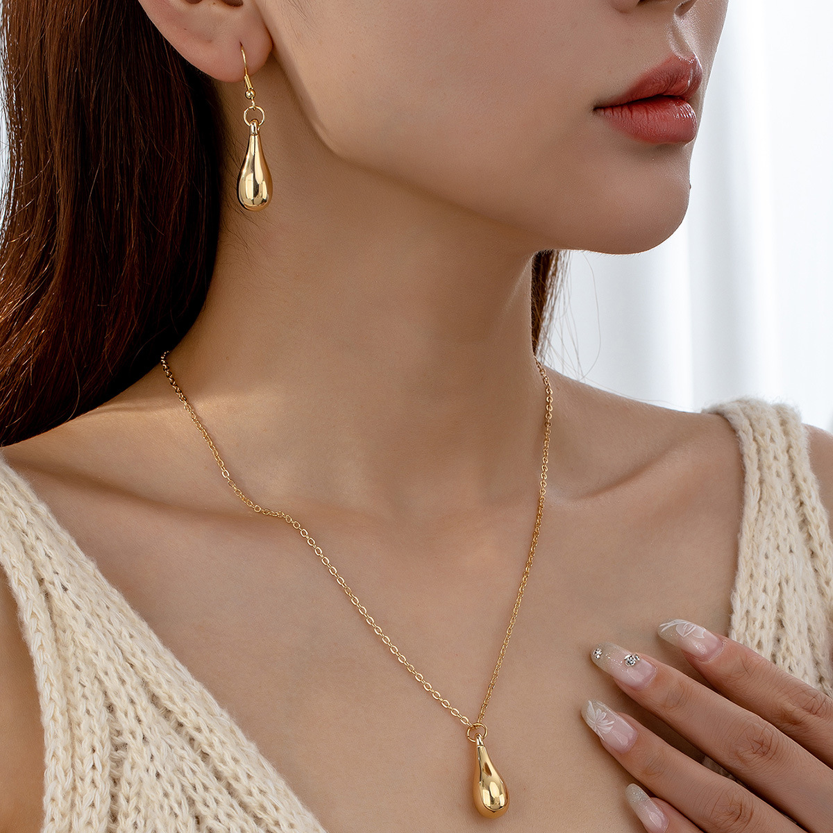 欧米のクロスボーダー夏の新型水滴形ネックレス水滴形イヤリングファッションシンプルアクセサリーセット卸売り青島