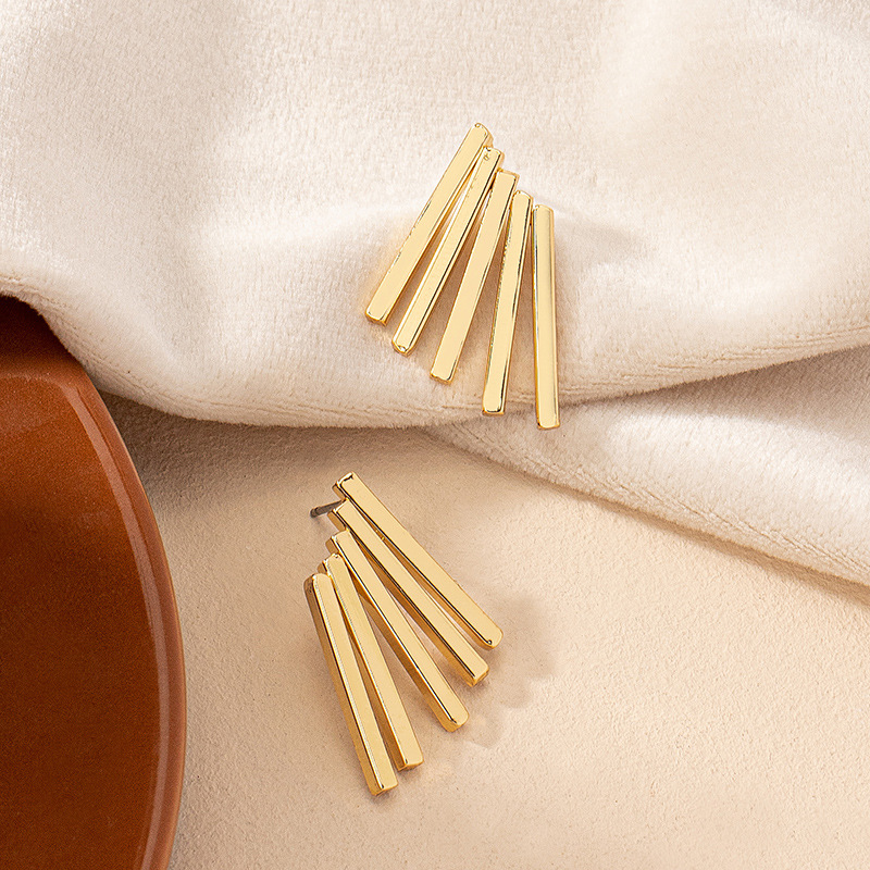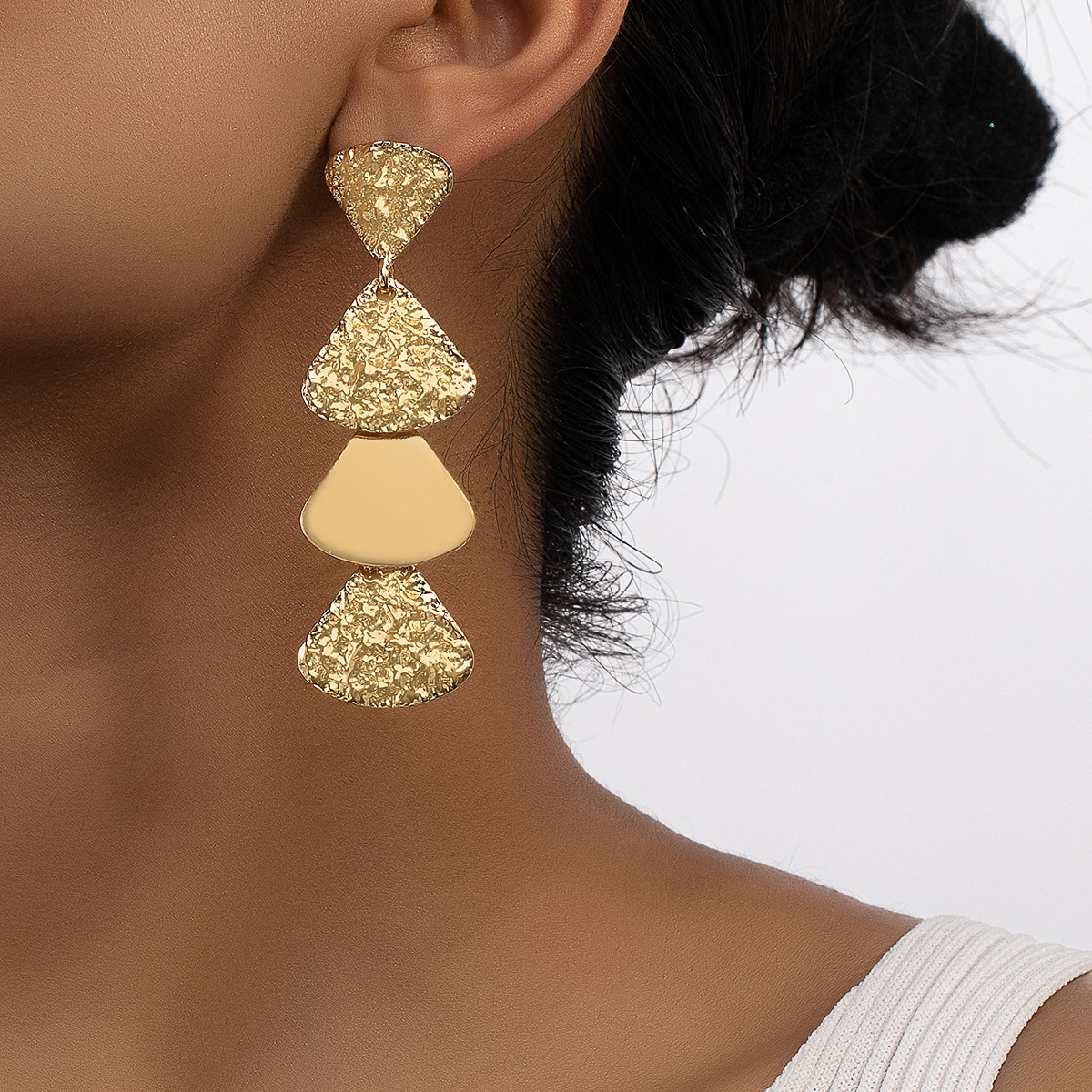 欧米の国境を越えた金色のレトロな三角凸面のイヤリングの女性の幾何学的な多層合金のフリンジのイヤリングの新型