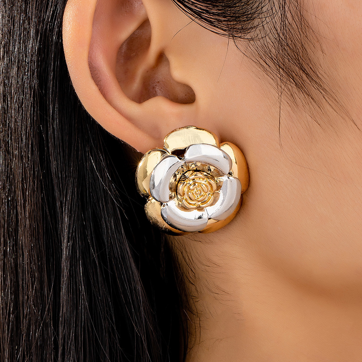 欧米の越境した新型のフランス式の優雅な気質は2色の花のピアスを合わせて、日常の通勤の集まりはアクセサリーを身につけます。