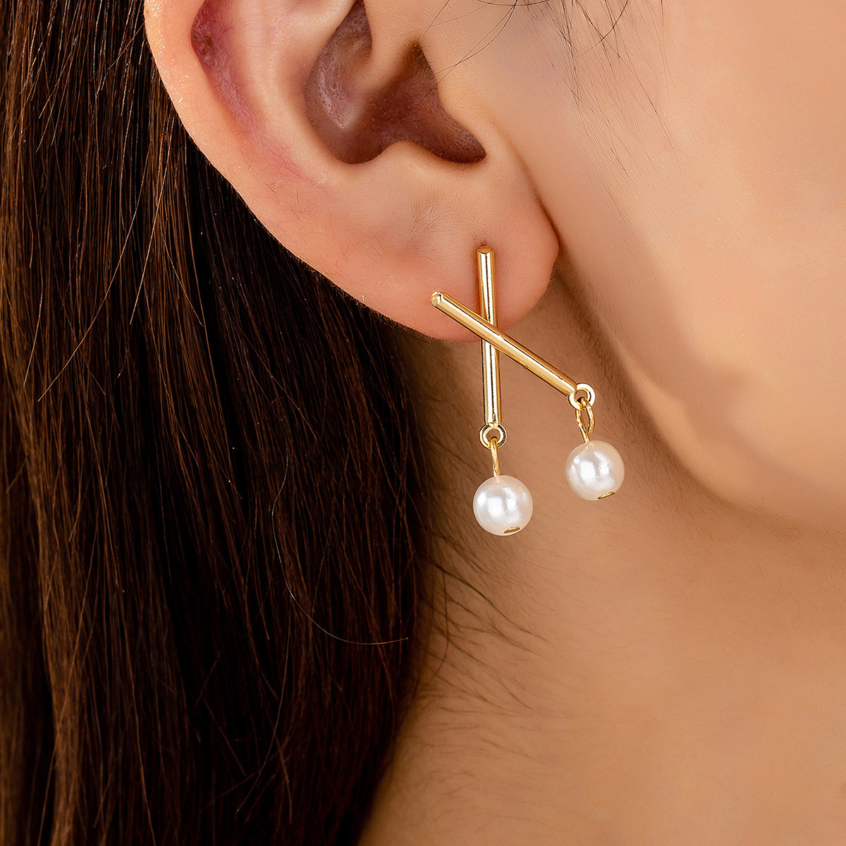 欧米の国境を越えた気質の優雅な個性デザインX形真珠ピアスファッション