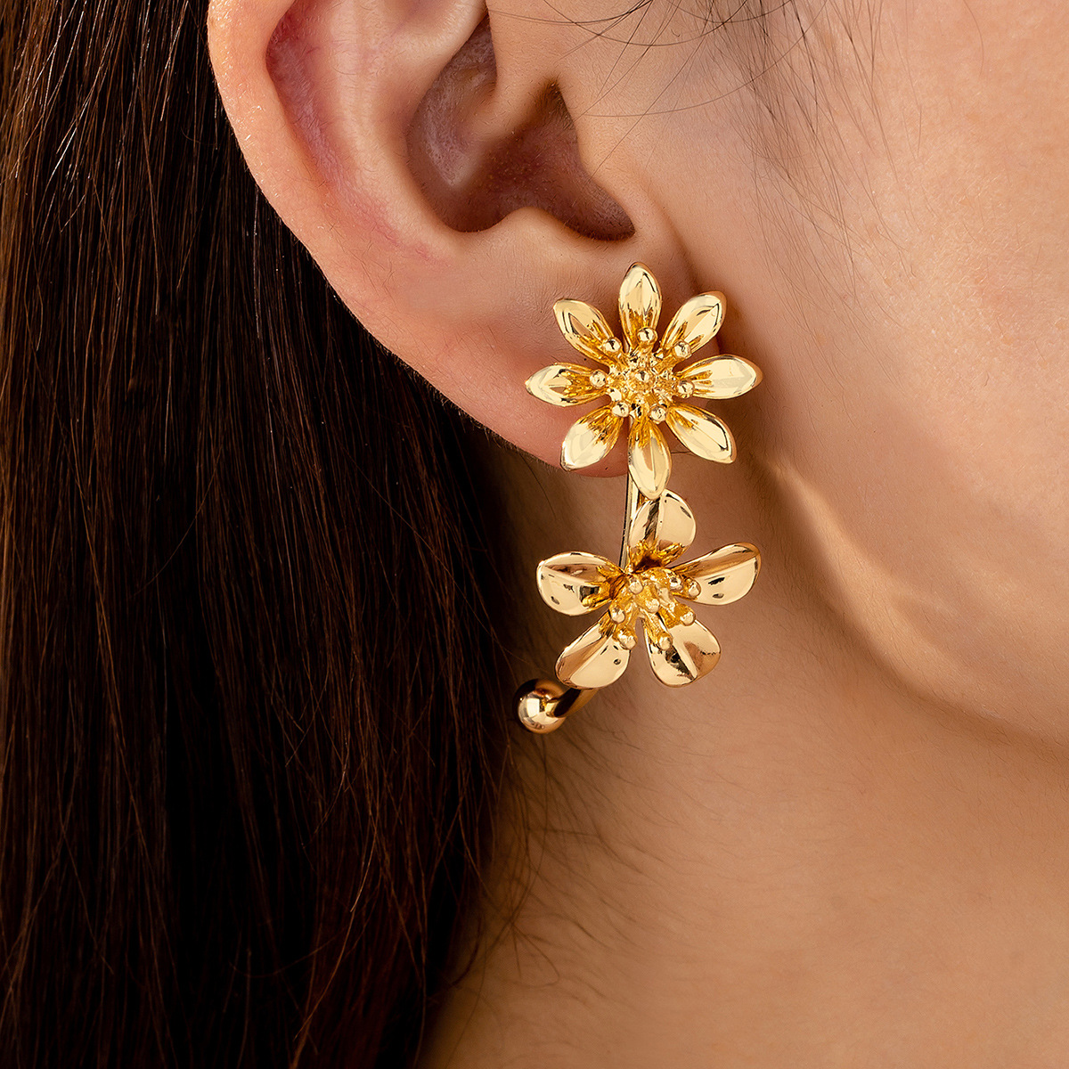 2024欧米の越境気質の優雅なファッションは高級感のあるデザイン感の花のピアスの女性が日常的に着用します。