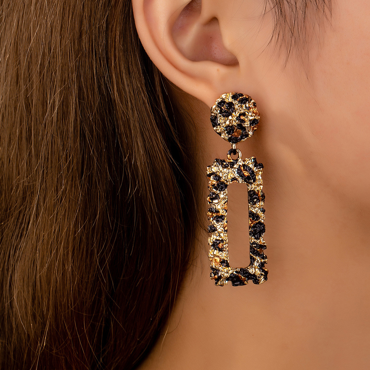 2024欧米の国境を越えた新型の幾何学的な透かし彫りの長方形のヒョウの紋様の耳のペンダントのファッション的なレトロな高級感のアクセサリーの卸売り