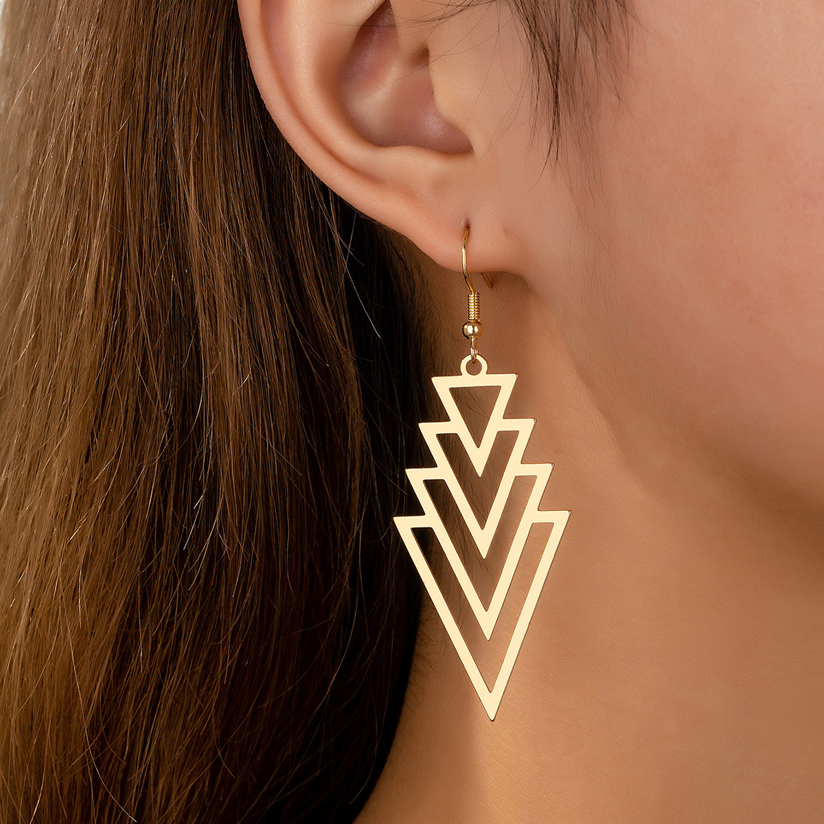 欧米の国境を越えた新型の幾何学平面の透かし彫りの三角形のイヤリングのファッションは簡単で冷たい風の気質の百合の装飾品です。