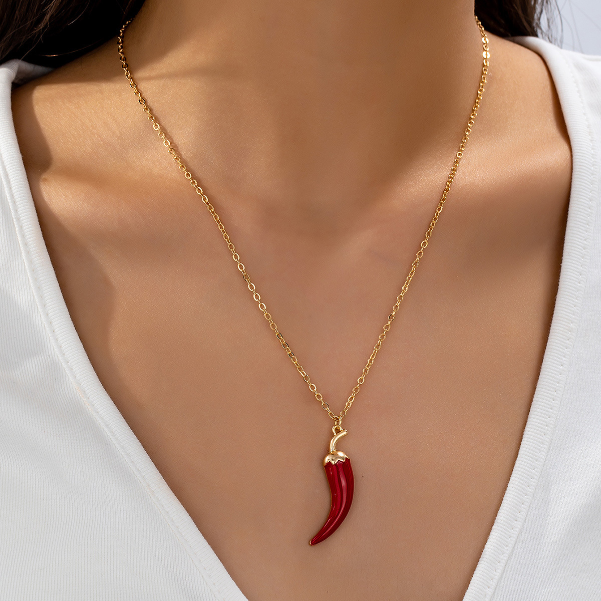 欧米の新型ファッション流行気質百合エナメル小唐辛子ペンダントネックレス高級感アクセサリーメーカー直販