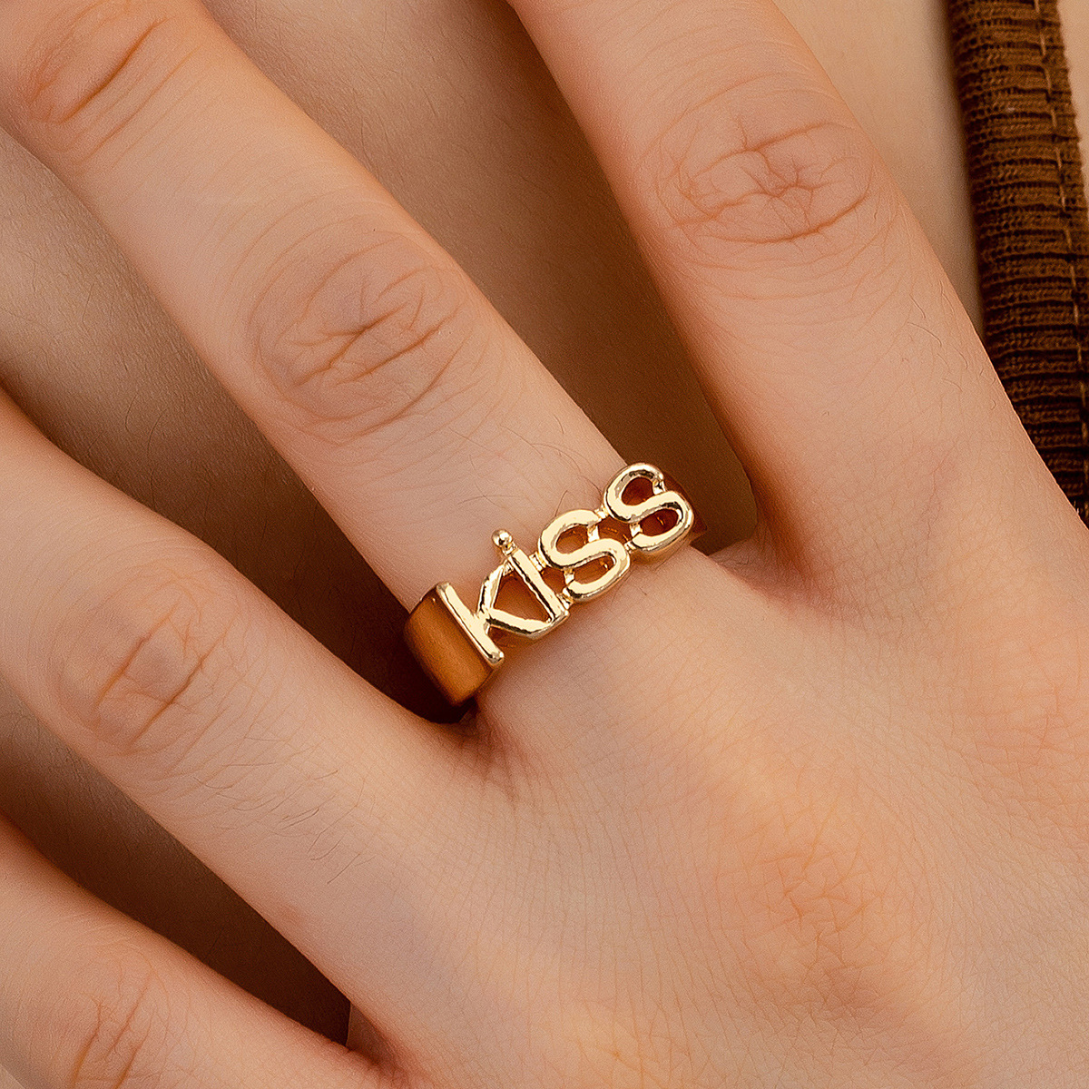 2024欧米の越境した新型のアルファベットのkiss指輪のファッションの潮流の個性の百合のアクセサリの卸売りのメーカーは直接販売します。