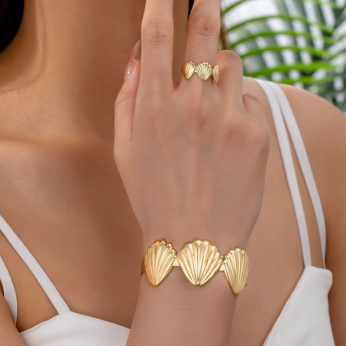 欧米のクロスボーダー貝殻ブレスレット貝殻指輪アクセサリーセット海洋風リゾート風アクセサリー日常休暇着用
