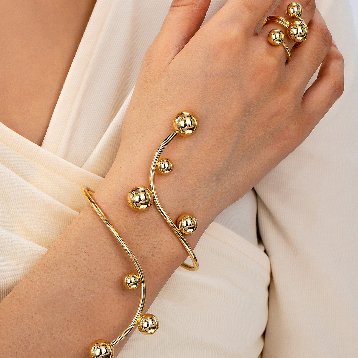 欧米のクロスボーダーの新型の誇張した個性の大きさの玉のブレスレットの大きさの玉の指輪の気質の優雅な装飾品のスーツ